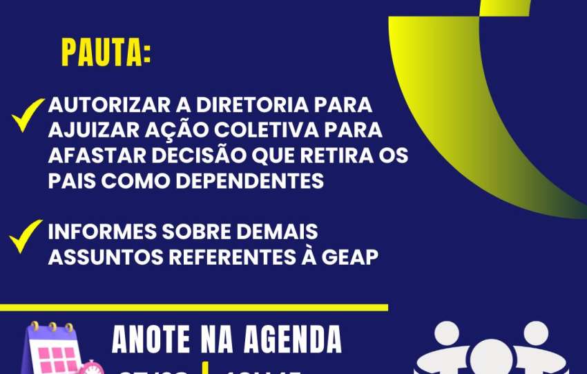 A Associação A GEAP É NOSSA convoca TODOS OS SEUS ASSOCIADOS para a Assembleia Geral Extraordinária Virtual, a ser realizada no dia 27 de março, às 18h45, em primeira convocação, e às 19h, em segunda convocação, por meio da plataforma Google Meet.