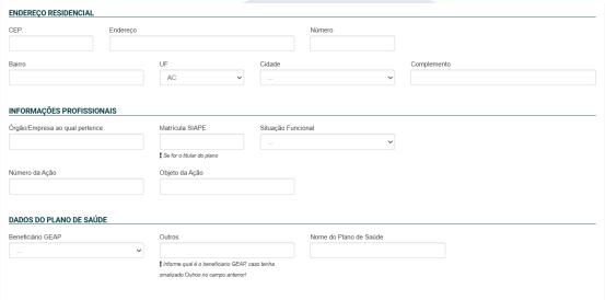 4 – Nas telas que se seguem, preencha todos os seus dados e do plano de saúde da GEAP que você paga.